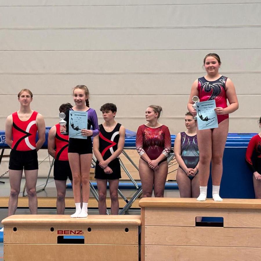 Bei den Mädchen der Klasse M5 erturnte sich Alexandra Säbsch mit 70,7 Punkten die Bronzemedaille. Nina Blersch holte mit 61,2 Punkten in der Leistungsklasse M6/M7 den zweiten Platz.