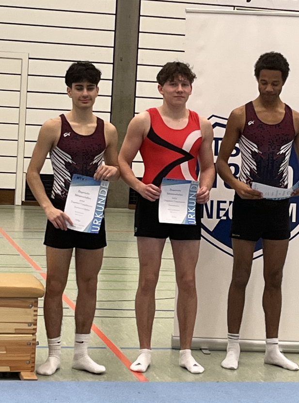 Jona Votteler zeigte drei ordentlich geturnte Übungen und holte sich damit 65,7 Punkte und die Goldmedaille der Jahrgänge 2008 bis 2010 der Jungen. Sein Teamkollege Thomas Köster stieg mit 57,4 Punkten als dritter auf das Podest.